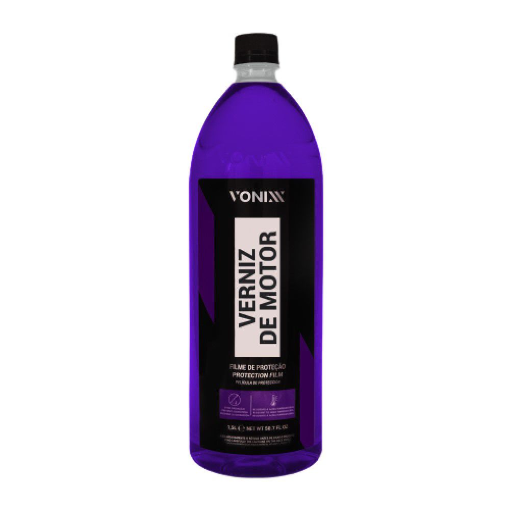 VERNIZ DE MOTOR, protege, dá brilho e renova todas as superfícies existentes no cofre do motor, como partes metálicas, plásticas, superfícies pintadas e mangueiras de borracha. O produto forma um filme levemente lubrificado que penetra em locais difíceis e adere em todas as superfícies citadas. Verniz de motor é resistente a altas temperaturas e tem durabilidade de até seis meses. Também pode ser utilizado em chassi e caixas de rodas, proporcionado os mesmos benefícios de sua aplicação no motor.